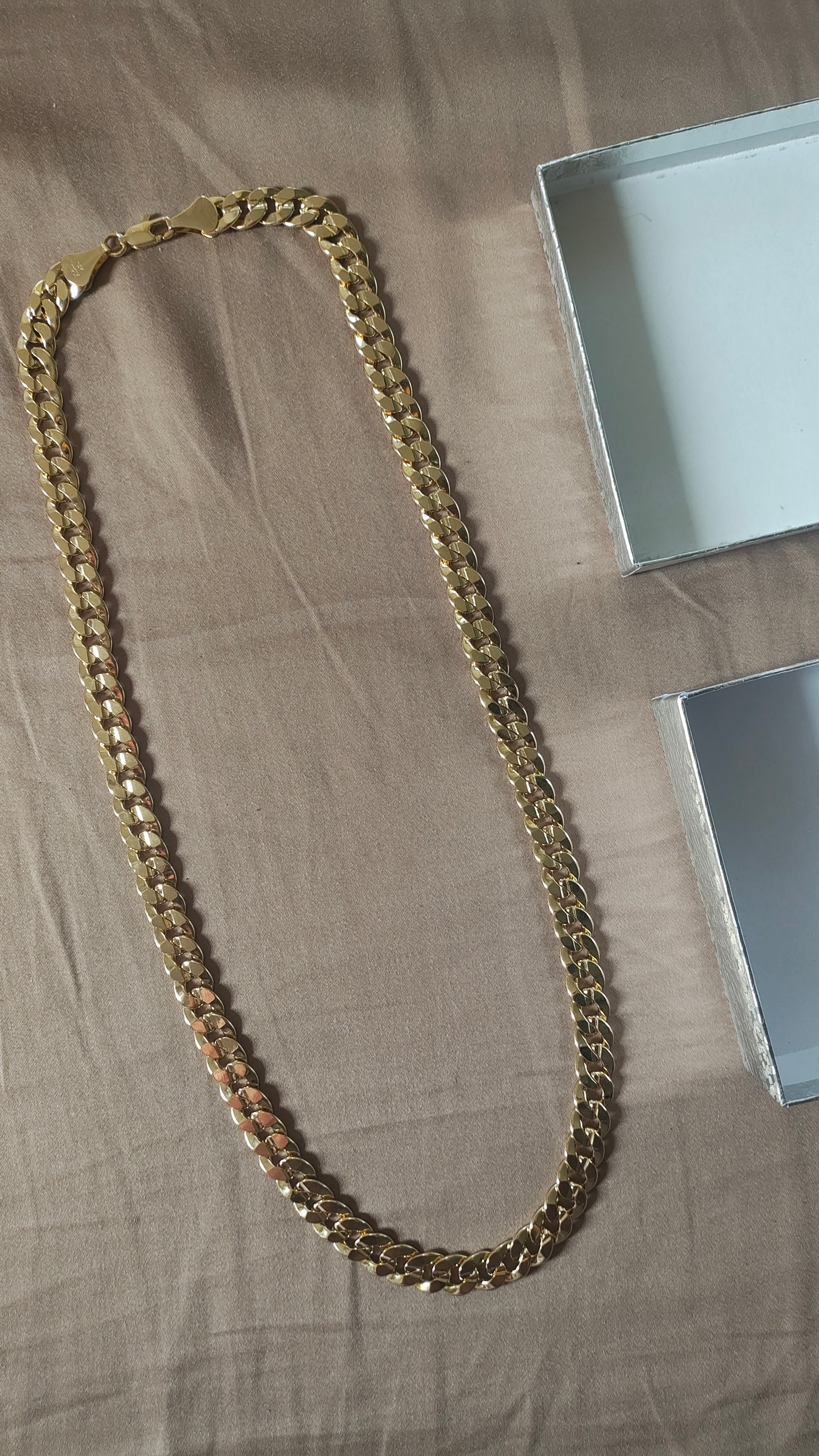 This chain is brilliant and heavy, with no visible defects. The purity, 14K, is engraved on the clasp. The country "Italy" is also engraved in reference to the blend and precision. There are fine scratches from careful wear on the clasp, only noticed on close inspection. It was crafted and polished by a generational jeweler in Florida. This chain is unmistakably authentic, but if you take it to a boutique and it is in fact fake, you will get a refund and a $100 gift card to my store. If you have further questions or concerns, text me at 305 62two 1224.