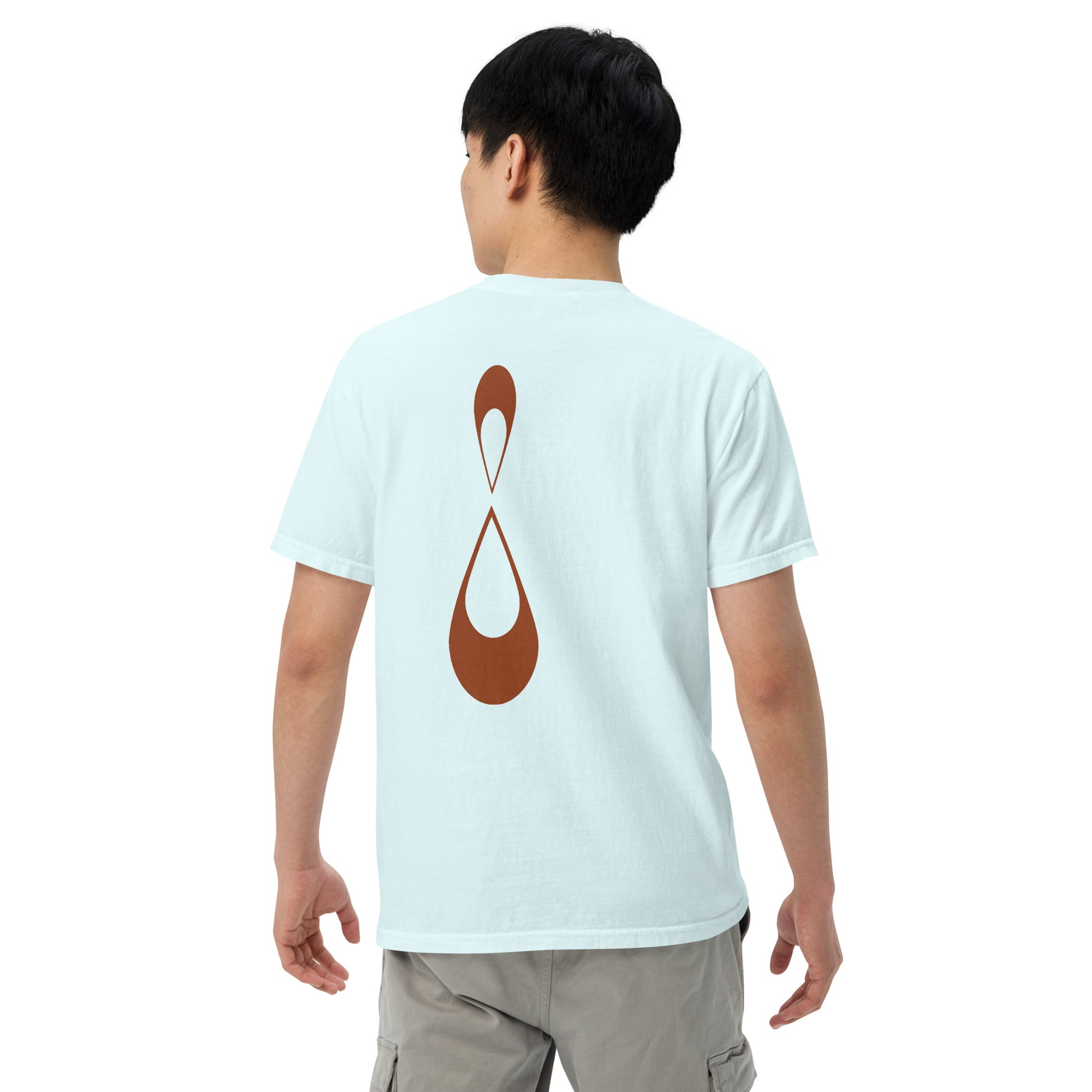 Silk screen print over garment-dyed fabric for penetrating contrast on a washed out base.